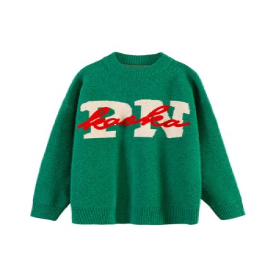 Autumn Winter Women O-neck Puff Long Sleeve Knitted Pullover Sweater Vintage Print Loose Casual Simplicity Knitted Sweater