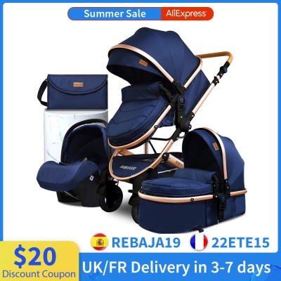 4 in 1 Baby Stroller High Landscape Newborn Pram Anti-shock All Terrain Light Pushchair Reversible Bassinet Send Mom Bag