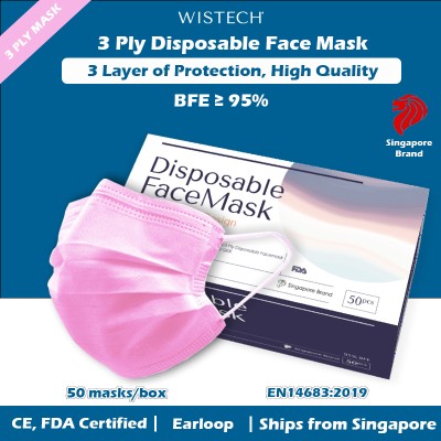 [GET %% OFF MIX AND MATCH]Wistech 3 Ply Disposable Face Mask, 50 pieces, FDA CE Approved,BFE 95%, Singapore Local Stock