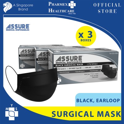 [Bundle of 3] ASSURE Black Surgical Face Mask 3-Ply With Ear- Loop, 50'S/Box