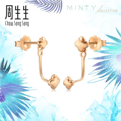 Chow Sang Sang 周生生 Minty Collection 18K Rose Gold Four-Leaf Clover Earrings 92825E