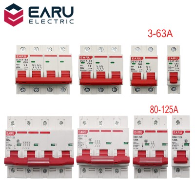 DZ47 400V 1-4P 3-125A C Type Mini Circuit Breaker MCB Short Overload Circuit Protector 35mm Din Rail Mount Breaking Capacity 6KA