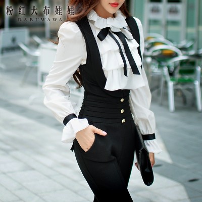 Dabuwawa Autumn Winter White Blouse Women Ruffles Bow Tie Shirts Long Puff Sleeve office lady Elegant Blouse Top