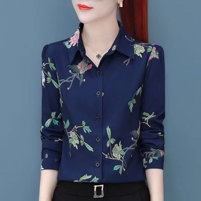 Chiffon Printed Shirt Women's Long-sleeved Spring and Autumn Retro Top Middle-aged Mother Floral Shirt Blusas S-4XL
