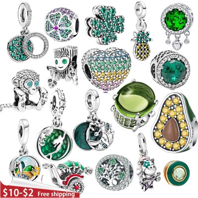 925 Sterling Silver Green Series Flower Tree Apple Pendant DIY fine beads Fit Original Pandora Charms Bracelet Women Jewelry