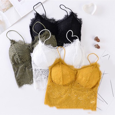 Female Summer Crop Tank Top Women Deep V Lace Bras Embroidery Floral Tank Top Bra Wrapped Chest Camisole Padded Bra