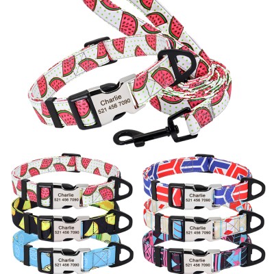 Cute Custom Dog Collar Leash Personalized Fruit Print Nylon Dog Collar Lead Engraved Name ID For Small Medium Large Dog Pitbull