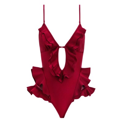 Summer Chic Deep V-neck Ruffled Cutout Design Bodysuit Women Sexy Bikini Suit
