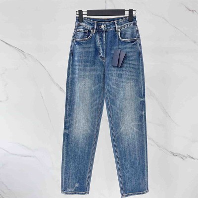 22 Designer Triangle Logo Letter High Waist Jeans Women High Street Blue Conical Jeans Vintage Printing Buttons Zip Pocket Pants
