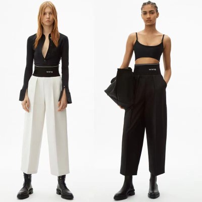 22fw European and American Style Side Zipper All-match High Waist Letter Loose Nine Points Women's Casual Pants Pure Cotton