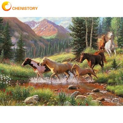CHENISTORY 60x75cm Oil Painting By Numbers Animals Horse DIY Paint By Numbers On Canvas Kits For Adult Frameless Hand Painting