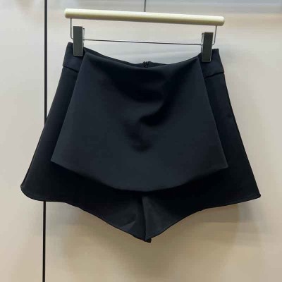 22 Summer Black A Line Shorts Pants Runway Sexy Ruffled High Waist Skort Temperament Wide Leg Chic Office Shorts Skirts