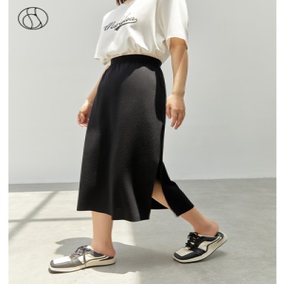 DUSHU Casual Knitted Skirts Women Autumn High Waist Commuter Black All-match Slim Thin Female Hip Skirts Bottoms