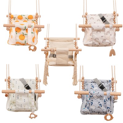 Baby Safety Swing Cartoon Canvas Chair Hanging Wood Outdoor Swinging Rocking Chair Baby Toy Room Decorations Accept Custom