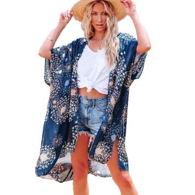 summer printed blouse women's leisure medium and long loose Tulle sunscreen jacket