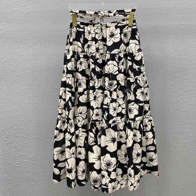 22 Summer cotton Printed Skirts Long Skirt With Large Hem Elegant Woemn Lace-up Design Back Zipper Clothes
