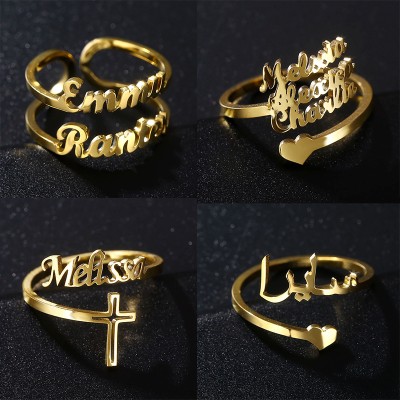 Custom Double Name Rings for Women Personalized Customized Ring Charm Couples Gold Stainless Steel Jewelry Wedding Gifts
