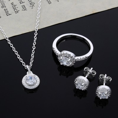 925 Sterling silver Cute Solid gift noble elegant women shiny crystal CZ necklace earring ring jewelry Set