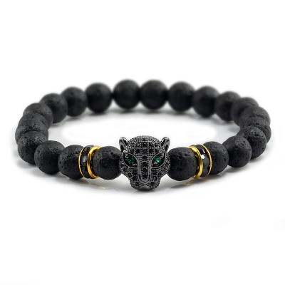 12 Style Bracelet Men Black Lava Healing Balance Beads Reiki Buddha Prayer Natural Stone Yoga Bracelet For Women Leopard Head