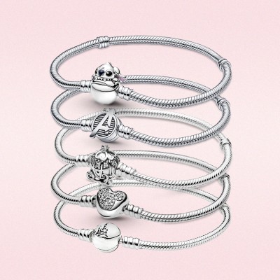 925 sterling Silver Bracelet Moments Sparkling Moments Mouse Heart Clasp Snake Chain Bracelet women for jewelry DIY charm bead