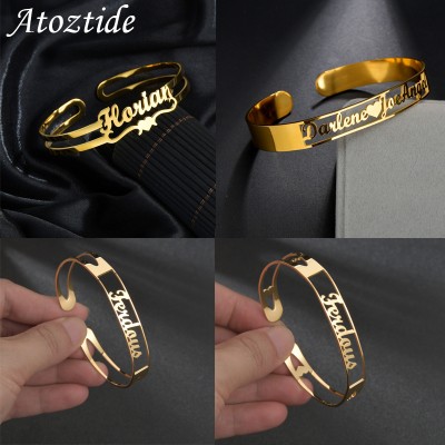 Atoztide Customized Letter Name Bracelet Personalized Custom Bangles for Women Men Stainless Steel Chrismas Jewelry Gift