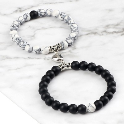 2Pcs/Set Beads Bracelet For Lovers Natural Stone Distance Heart Magnet Couple Bracelets Friendship Jewelry Gift