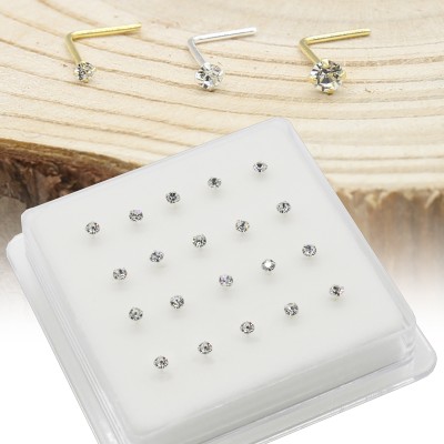 925 Sterling Silver Nose Stud 1.5mm 2.0mm 2.5mm Gemstone Thin Dainty Crystal Pin Nose Screw Ear Bone L Shape Bend Piercing Nariz