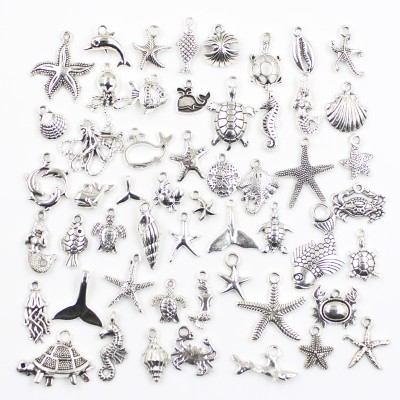 30pcs Charms Fish Starfish Octopus Crab Hippocampus Tortoise Antique Silver Color Mixed Pendants DIY Findings Tibetan Jewelry