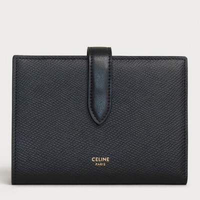 Celine Medium Strap Wallet in Black Grained Calfskin