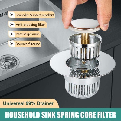 Double-layer Stainless Steel Filter Plug Universal Pop Up Basin Sink Stopper with Basket Hair Catcher Deodorant Drain Strainer