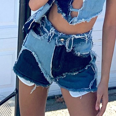 spring and summer contrast color slim high waist denim shorts jeans vintage
