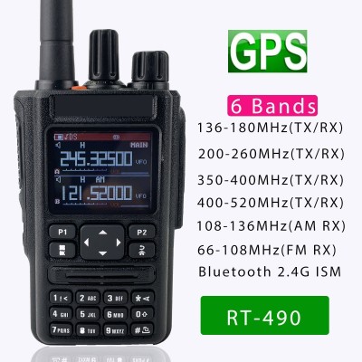 .RT-490 GPS 6 Bands Amateur Ham Two Way Radio 256CH Air Band Walkie Talkie VOX DTMF SOS LCD Color Police Scanner