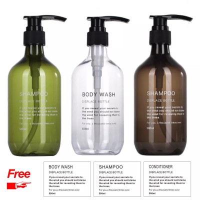 500ml Soap Bottle Bathroom Shower Gel Refillable Bottles Shampoo Wash Hair Dispenser with 2pcs Independent Sticker