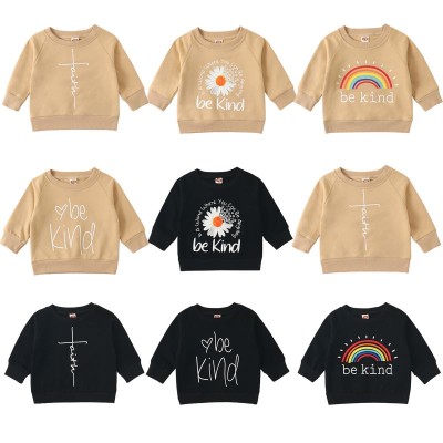 Baywell Autumn Sweatshirts For Boy Girl 0-3 Years Children's Clothing Cotton Floral Letter Print Tops For Girls Kids Hoodies
