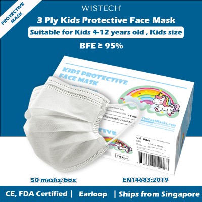 [GET %% OFF MIX AND MATCH] [Ready Local stocks] Choose colour 3 Ply Kids Protective Face MASK, TheFastMask, Kids Disposable Mask, 50 pieces, FDA CE Approved, BFE 95%