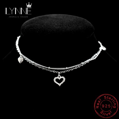 925 Sterling Silver Heart Rhinestone CZ Pendant Double Layer Anklets Women Jewelry Summer Zircon Foot Chain Bracelet